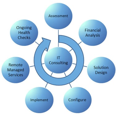 Strategic guidance and advisory services to help businesses align their technology investments with their goals and objectives, including IT infrastructure planning, technology road-mapping, and vendor selection. Leverage our expertise and strategic guidance to align your technology investments with your business objectives. Our IT consulting services encompass IT infrastructure planning, technology road-mapping, vendor selection, and digital transformation initiatives. Whether you're seeking to optimize existing systems, implement new technologies, or navigate complex IT challenges, we provide insights and recommendations to help you achieve your goals.